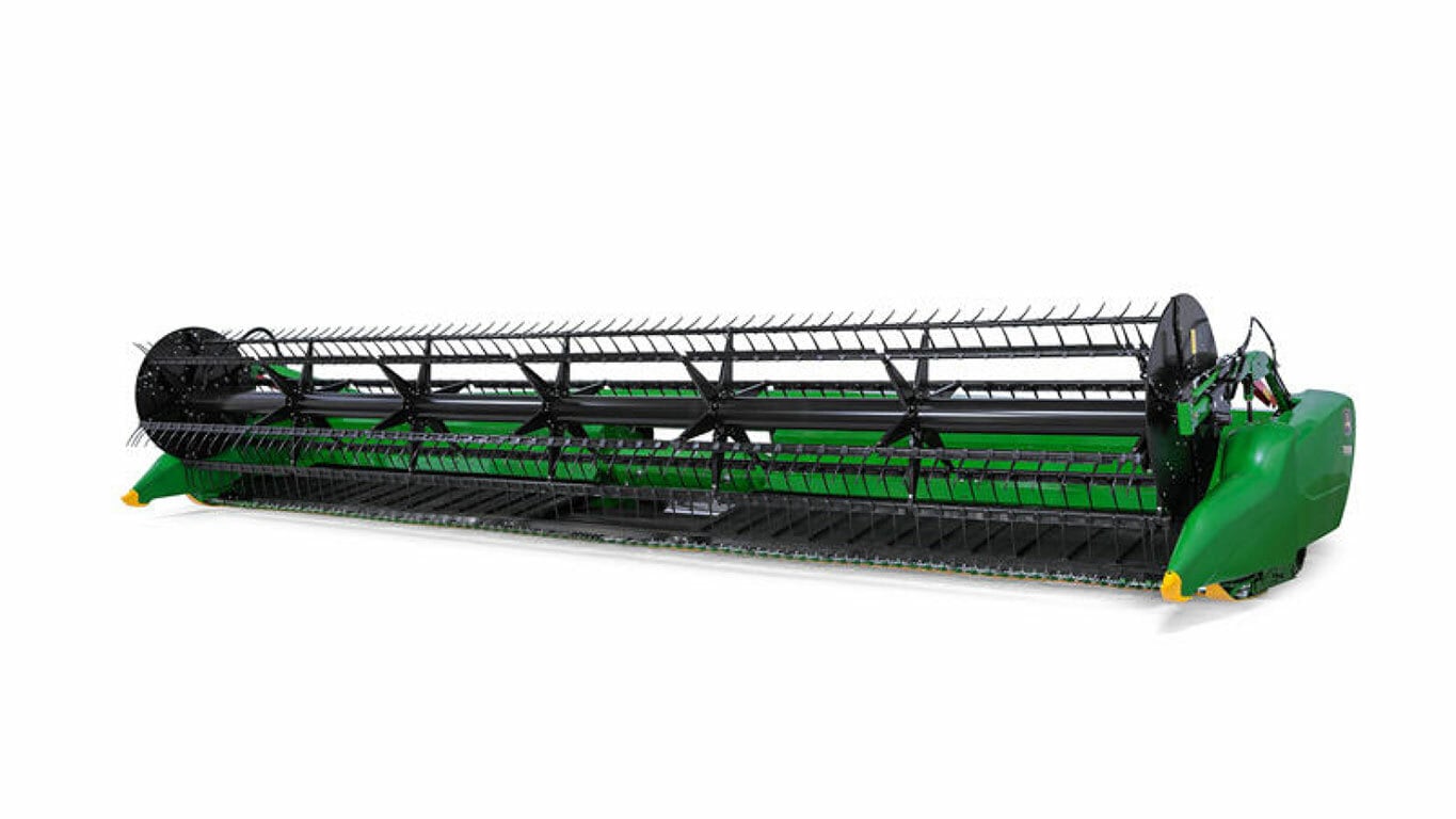 A plataforma RDF30 versão arrozeira está equipada com vedações em ambas as laterais da plataforma, reduzindo vazamento de grãos e acumulo de material sobre os componentes abaixo localizados.