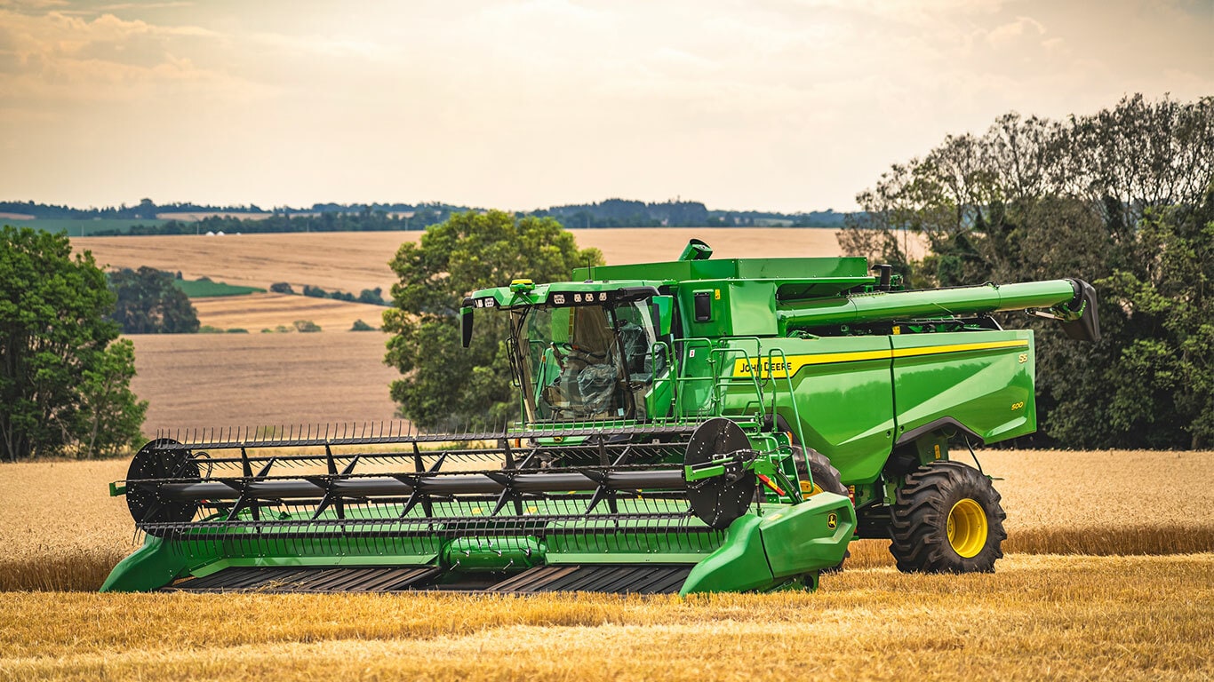 As Colheitadeiras Série S oferecem uma rápida velocidade de descarga, e a amplificação de potência do motor permite descarregar sem parar a máquina. Com um design que maximiza o valor para o cliente, essas colheitadeiras são posicionadas para proporcionar ampla folga dentro do caminhão ou carrinho de grãos. O sem-fim gira um total de 107 graus, facilitando o enchimento completo, enquanto a capa do sem-fim de descarga garante um fluxo controlado da cultura para o equipamento de manuseio de grãos.
